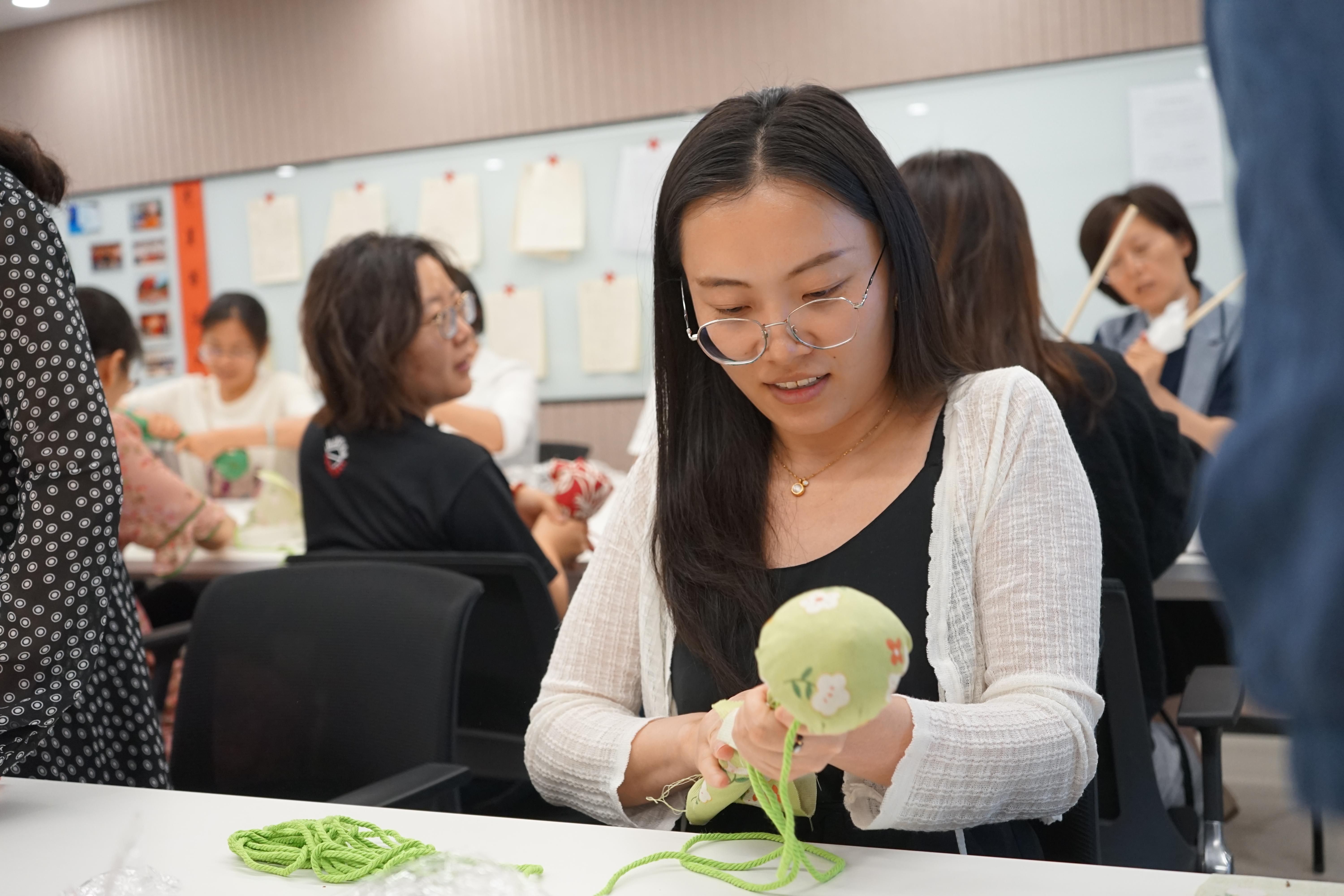 活動(dòng)伊始,活動(dòng)組織者首先向大家介紹了端午節(jié)掛艾草的民俗背景及艾草藥用價(jià)值和中醫(yī)養(yǎng)生知識(shí),讓大家對(duì)艾草有了更深入的了解;進(jìn)入手工DIY環(huán)節(jié),向大家現(xiàn)場(chǎng)演示了艾草錘的制作方法和使用方法。隨后,員工們紛紛動(dòng)手嘗試,按順序鋪平布料、將曬干的艾草放在中間,用布料裹住,捏成一個(gè)緊實(shí)的圓形,插入木棍,拿出繩子將剩余的布料緊緊捆綁成柱形,大家有條不紊,一邊完善手工步驟,一邊互幫互助,一個(gè)個(gè)精致的艾草錘在大家的手中逐漸成形,隨后大家用做好的艾草錘敲敲肩頸、捶捶后背,拍打之間,經(jīng)絡(luò)暢達(dá)、身心舒暢,整個(gè)活動(dòng)現(xiàn)場(chǎng)充滿了歡聲笑語(yǔ),氣氛熱烈而融洽。
