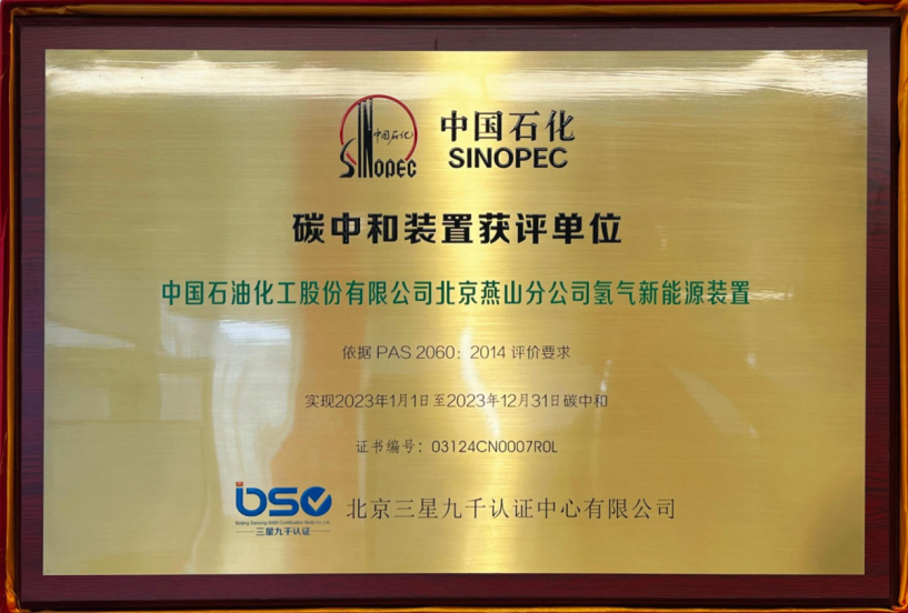 三星九千專家組以文件評審和深入現(xiàn)場核證的方式,對燕山石化氫氣新能源裝置“碳中和”實施計劃、碳管理機制、溫室氣體排放過程和結(jié)果,以及碳減排措施和碳抵消方式進行了科學(xué)評價。通過評價證實該裝置運行過程符合PAS2060標準要求,達到“碳中和”狀態(tài),并頒發(fā)碳中和評價證書,進一步證實氫氣新能源裝置實現(xiàn)了凈零排放的目標。