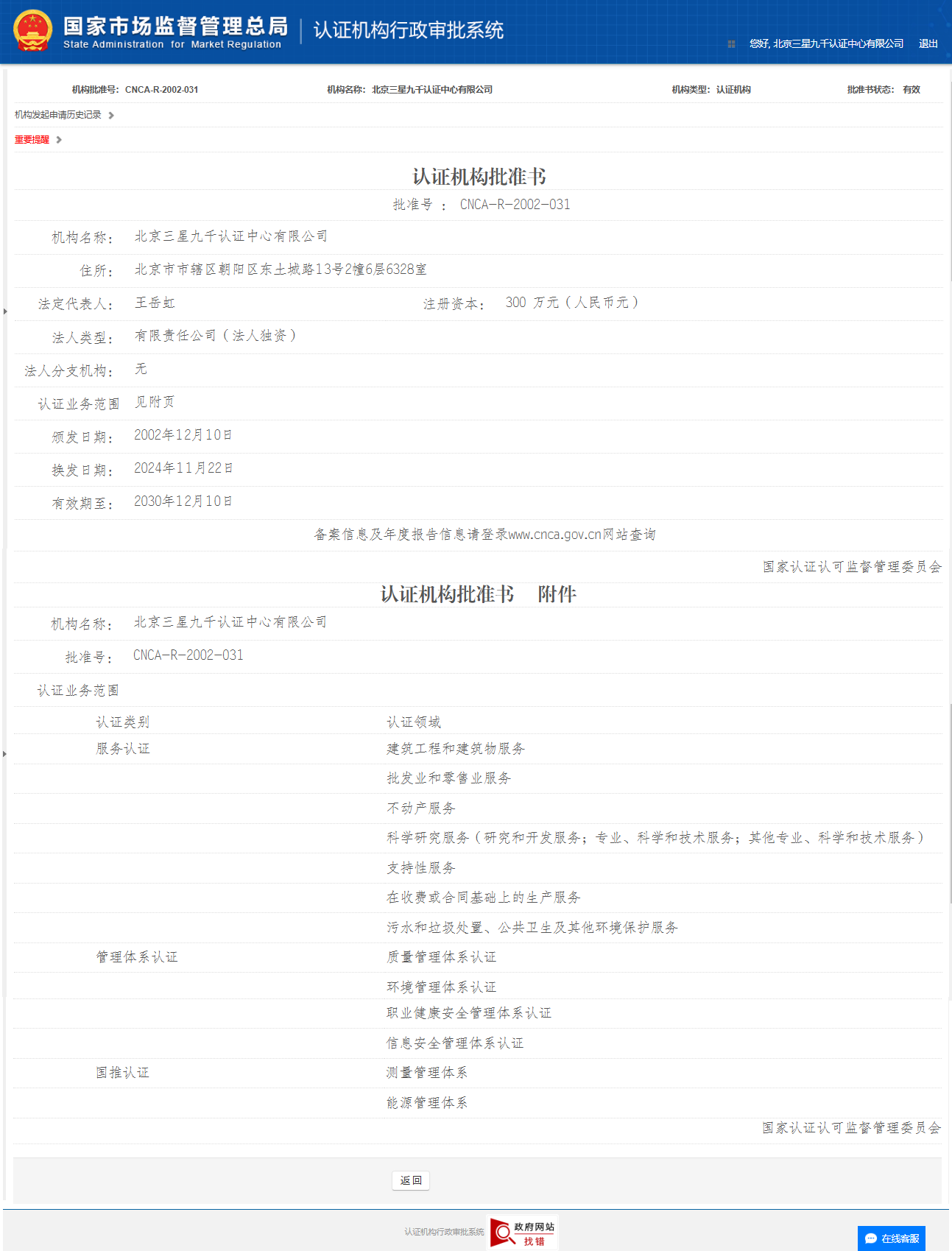 近日,北京三星九千認(rèn)證中心有限公司通過國家認(rèn)證認(rèn)可監(jiān)督管理委員會(huì)的行政審批,成功獲得“信息安全管理體系”認(rèn)證領(lǐng)域資格。