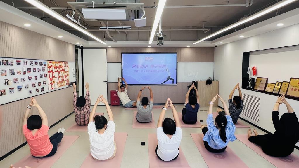 活動(dòng)現(xiàn)場(chǎng)氛圍寧?kù)o而專(zhuān)注,伴隨著舒緩的音樂(lè),女員工們?cè)趯?zhuān)業(yè)瑜伽老師的帶領(lǐng)下,逐步進(jìn)入放松狀態(tài)。從呼吸調(diào)整到體式練習(xí),大家認(rèn)真投入,在伸展與平衡中感受身體的對(duì)話,體驗(yàn)運(yùn)動(dòng)帶來(lái)的寧?kù)o與愉悅。